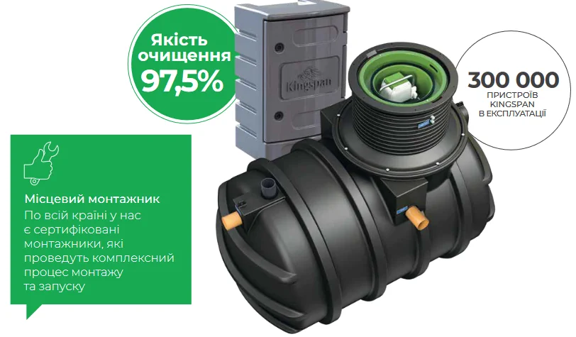 Система очищення стічних вод Kingspan Klargester BioAir® – це надійне та ефективне рішення з простою конструкцією. Вона призначена для будинків без доступу до каналізаційної системи. Гнучкі можливості монтажу дозволяють встановлювати систему в різних місцях на земельних ділянках.