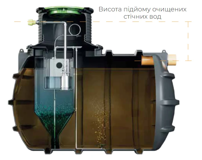 Установки біологічного очищення стічних вод BioAir® можуть бути оснащені додатковим дренажним насосом (опція IPS). Це дозволяє установці долати складні ґрунтові та водні умови на об’єкті.